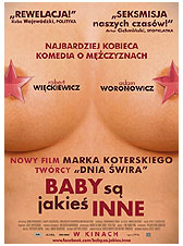 "Baby są jakieś inne" to najnowsza rozprawa arcymistrza słownego humoru ze stereotypowymi opiniami na temat ról kobiet i mężczyzn oraz chwytliwym, acz coraz bardziej mylnym przekonaniem, kto z nas jest z Wenus, a kto wziął się z Marsa. Noc. Jedzie dwóch facetów samochodem i gada o babach. O babach – jak je dziś widzą – w domu, rodzinie, łóżku, kiblu, w pracy, sporcie, sądzie, polityce, na ulicy. We wszystkich sferach życia; w sprawach dużych i małostkach... Tylko dwóch facetów jedzie nocą i gada na baby, że – choć przyszło nam być z nimi – nie da się z nimi żyć, że jest z nimi jak w ringu, że baby nas nienawidzą, my ich nienawidzimy; są silniejsze, są mądrzejsze i się mądrzą, a poza tym – co najgorsze – grają bez zasad. Że przez nie same kłopoty... Skrajne kłopoty z bab ręki nie omijają zresztą w filmie i naszych facetów. Bohater „Dnia świra”, Adam Miauczyński napisał scenariusz „Baby są jakieś inne”, a Marek Koterski nakręcił według niego film, ze zdjęciami hollywoodzkiego operatora Jerzego Zielińskiego.